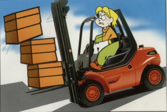 如果駕駛叉車越過地面上的物體、或經過坎坷不平的地面、多洼地的場所,或者撞擊到頂部的物體、或者碰撞其他的物體,都可能引起叉車的傾翻。